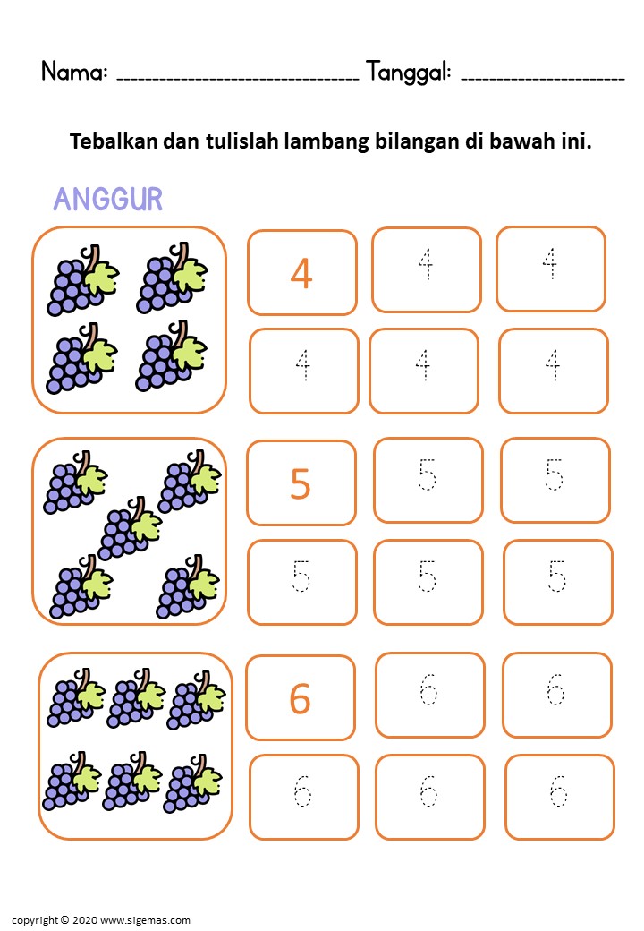Menulis Angka 4-6 (Anggur)
